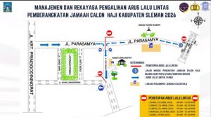 Guna mendukung kelancaran pemberangkatan jamaah calon haji tahun 2026, Dinas Perhubungan Sleman memberlakukan manajemen dan rekayasa lalu lintas di sejumlah ruas strategis di wilayah Kabupaten Sleman. Kebijakan ini difokuskan di sepanjang Jalan Parasamya, mulai dari Simpang Empat Beran hingga kawasan Jalan Candi Gebang (Disnakersos).